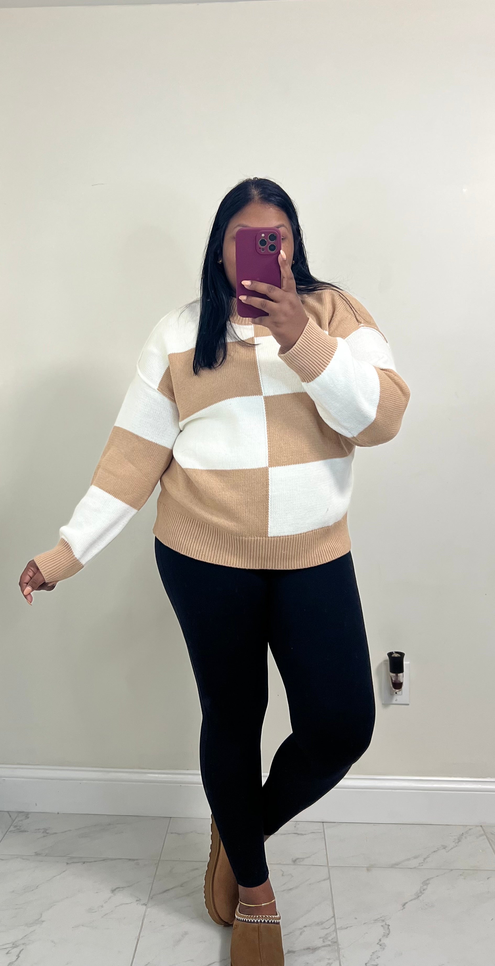 Light Weight Sweater Featuring A Classic Checkered Pattern And Cozy Mock Neck.