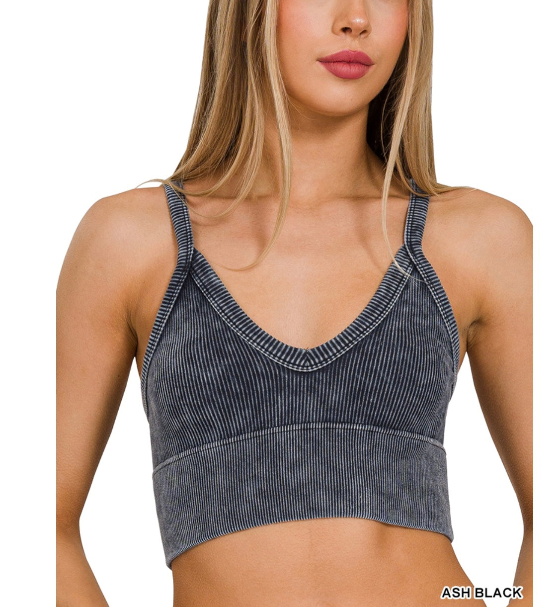 WASHED RIBBED SEAMLESS V-NECK CROPPED CAMI TOP