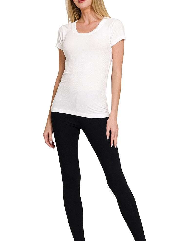 Ribbed Round Neck Full Length Tee.