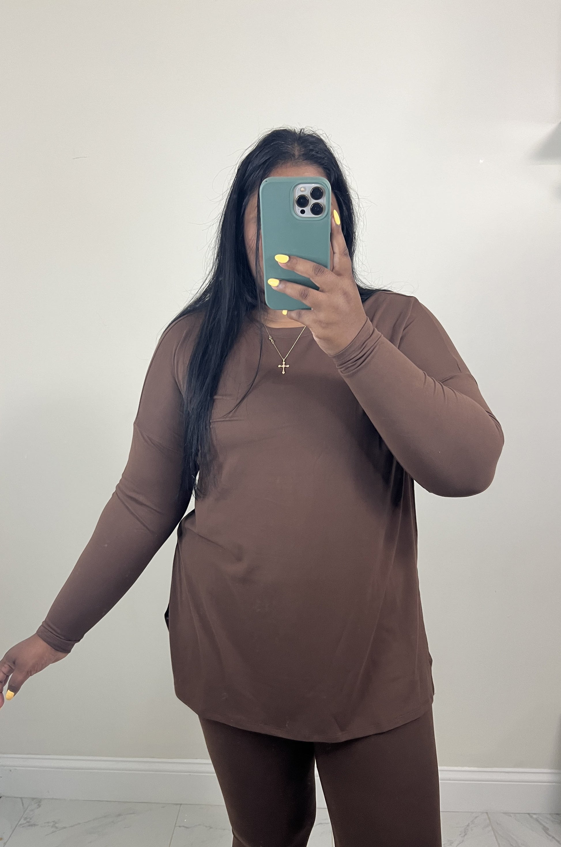 Brushed Microfiber Round Neck Hi-Low Top & Legging Set
